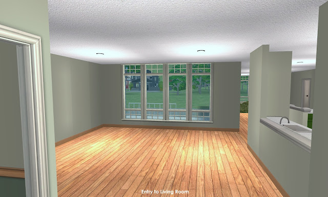 This house was intended to be UNFurnished *sigh* ...but I couldn't help adding a few bits. The furniture placement is just a suggestion! Please CC-it-up once you get it in your game. All appliances, plumbing and lighting are included. The stove and grill have smoke alarms. The telephone is by the kitchen. The front door has a burglar alarm.